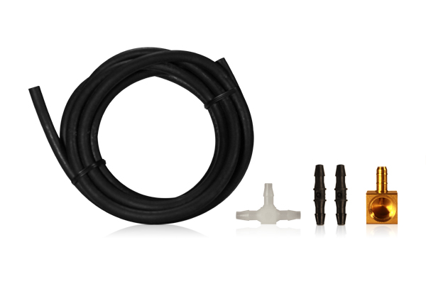 Includes 6' vacuum tubing, t-fitting, 2 anti-buzz inline restrictors, 90 degree barb fitting